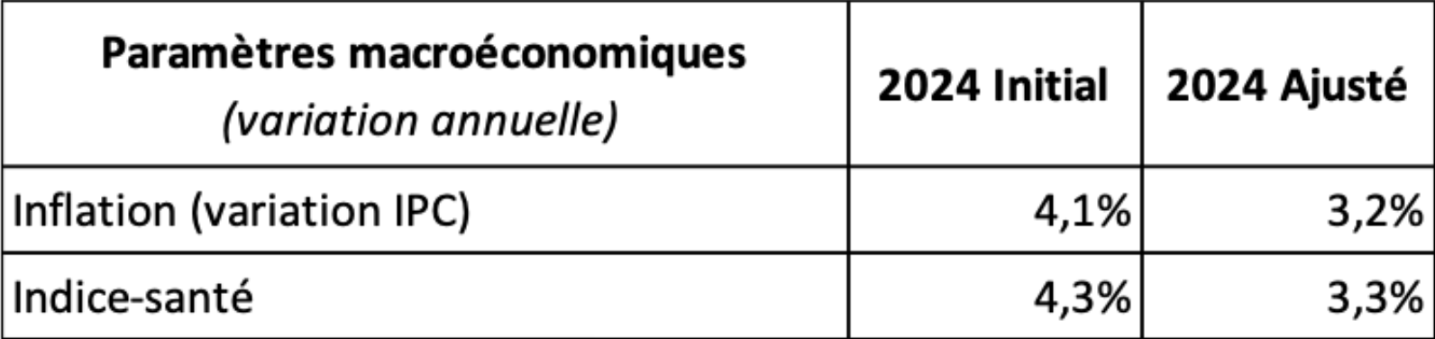En ce qui concerne l’ajustement des crédits de dépenses, le projet de budget a été établi sur base des prévisions macro-économiques du Bureau fédéral du Plan de ce mois de septembre. Par rapport aux paramètres utilisés pour le budget initial 2024, les estimations d’inflation ont été revues à la baisse, de près de 1 %. Cette révision à la baisse des prévisions d’inflation par rapport aux hypothèses du budget initial 2024 entraîne une baisse mécanique du montant de nombreuses subventions et dotations pour la plupart des secteurs de la Fédération Wallonie-Bruxelles, en application des différents mécanismes de financement prévus par décret, ainsi qu’une baisse des prévisions d’indexation des traitements. Les mesures de soutien aux secteurs, prises dans le cadre du budget initial 2024 par le gouvernement précédent et qui visaient à répondre à des problématiques structurelles, sont maintenues dans le cadre de l’ajustement 2024. À la suite de l’actualisation des paramètres dans le cadre du budget économique de septembre 2024, les propositions de crédits pour le budget ajusté 2024 qui dépendent de l’inflation et de la croissance ont été mises à jour.